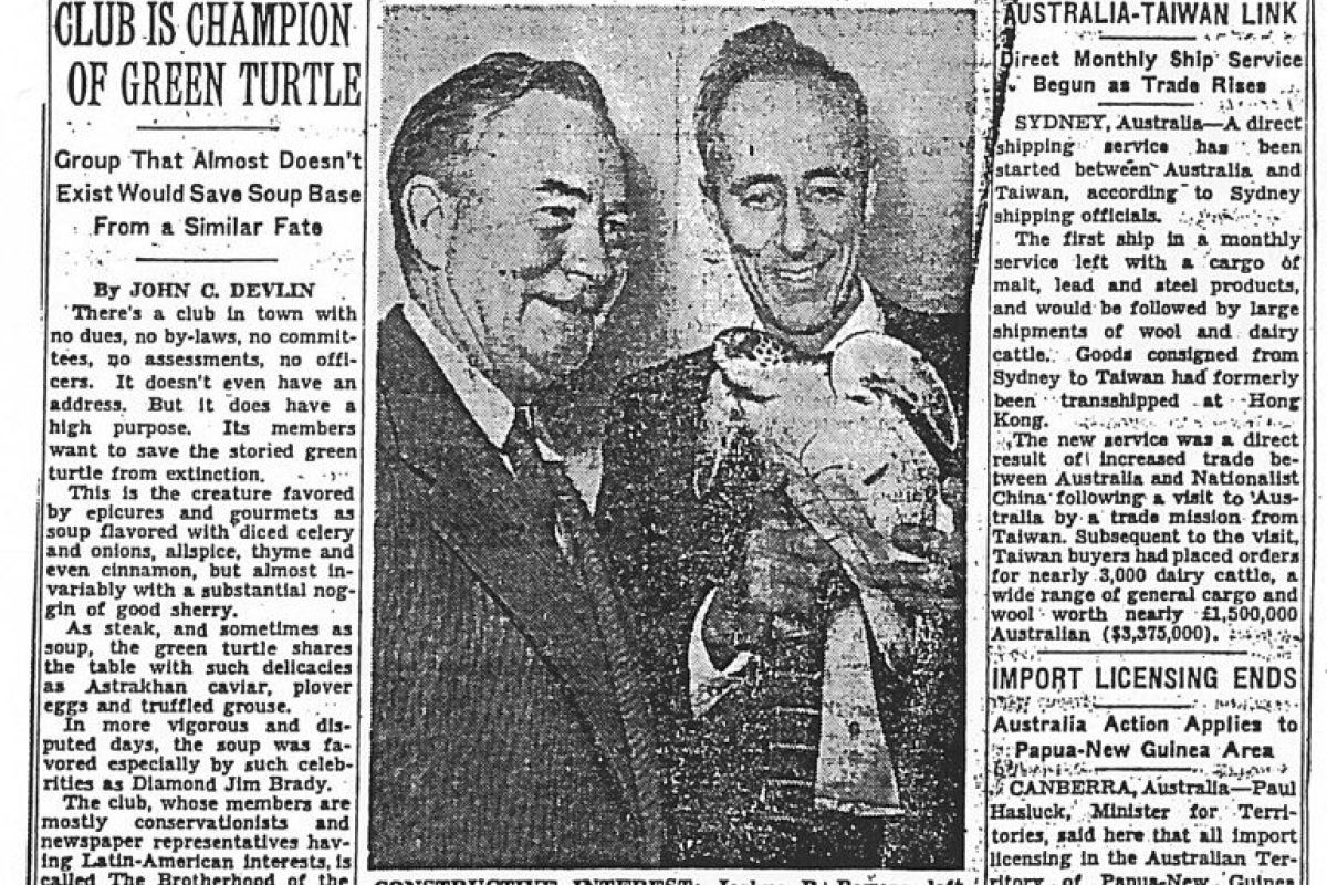 The Brotherhood of the Green Turtle is incorporated as the nonprofit Caribbean Conservation Corporation (CCC) by Mr. Joshua B. Powers (pictured, above left). Dr. Carr served as Scientific Director of CCC from 1959 until his death in 1987.