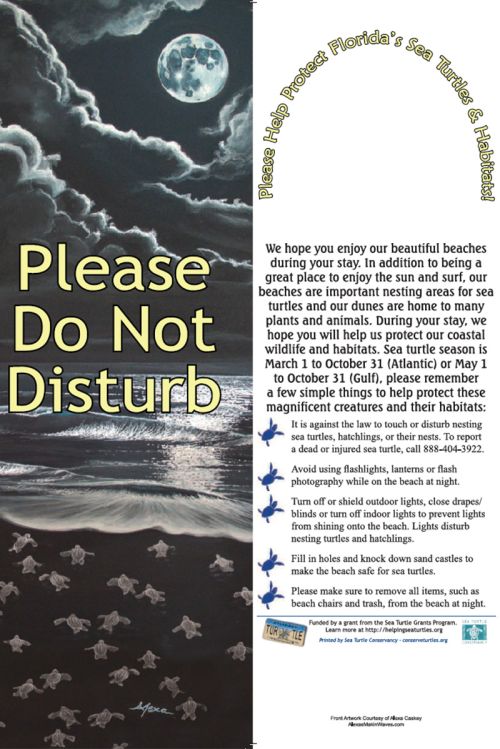 We currently have both the “Protect Florida’s Beaches & Sea Turtles” Table Tents and the “Do Not Disturb” Door Hang Tags.