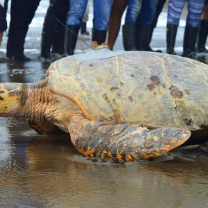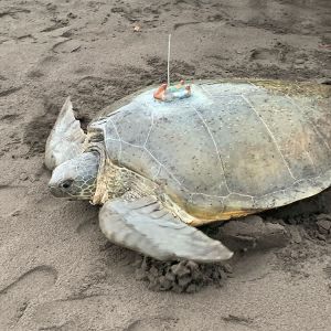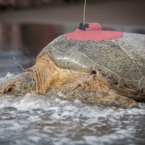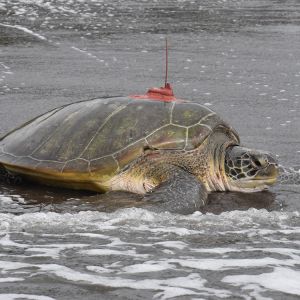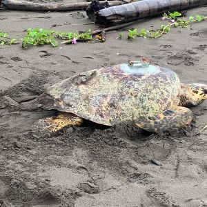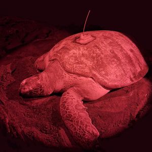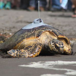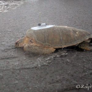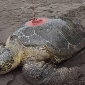 A satellite transmitter is attached to the turtle’s shell to monitor their movements once back in the ocean. Both green and hawksbill sea turtles are being tracked as part of this study designed to help STC and others learn more about the migratory behavior of these species. This information will help both conservationists and natural resource managers improve protection efforts for this endangered species by helping establish “migration pathways” between nesting grounds and feeding areas.