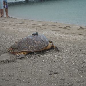 In August 2006, the Sea Turtle Conservancy, the Four Seasons Resort Nevis and the Nevis Turtle Group began an inaugural sea turtle research and conservation project to study the migration patterns of “critically endangered” hawksbill sea turtles (Eretmochelys imbricata) nesting along the Caribbean coast of Nevis in the West Indies. The study will reveal important information about the turtle’s migratory behavior, which will help both conservationists and natural resource managers to improve protection efforts for this endangered species.