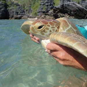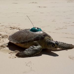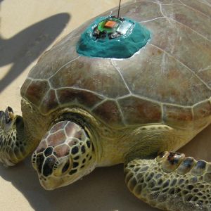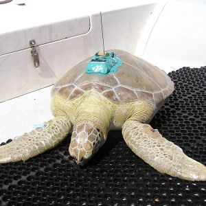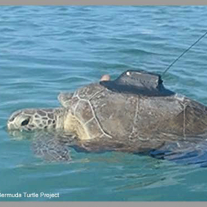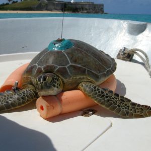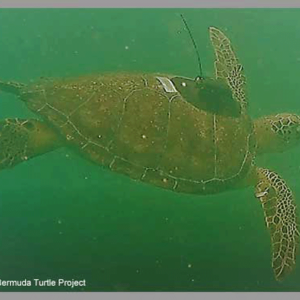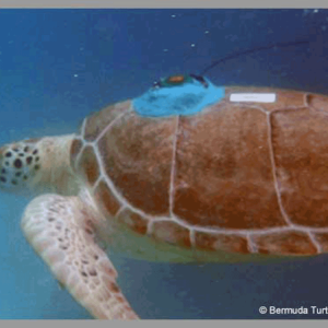 This project provides the unique opportunity to follow immature green turtles as they depart a developmental habitat. Over 3,500 immature green turtles have been captured on the seagrass flats with nets and tagged in Bermuda since the project began in 1968. Green turtles in Bermuda range in size from approximately 25 to 75 centimeters in shell length, with no recent records of adult turtles. Long-distance tag returns indicate travel south to feeding grounds in the Caribbean Sea. Starting in 2011, GPS satellite tracking units have been used to study the fine-scale movements of presumed resident turtles to learn more about how they use the habitat, what their daily and seasonal behaviors are.