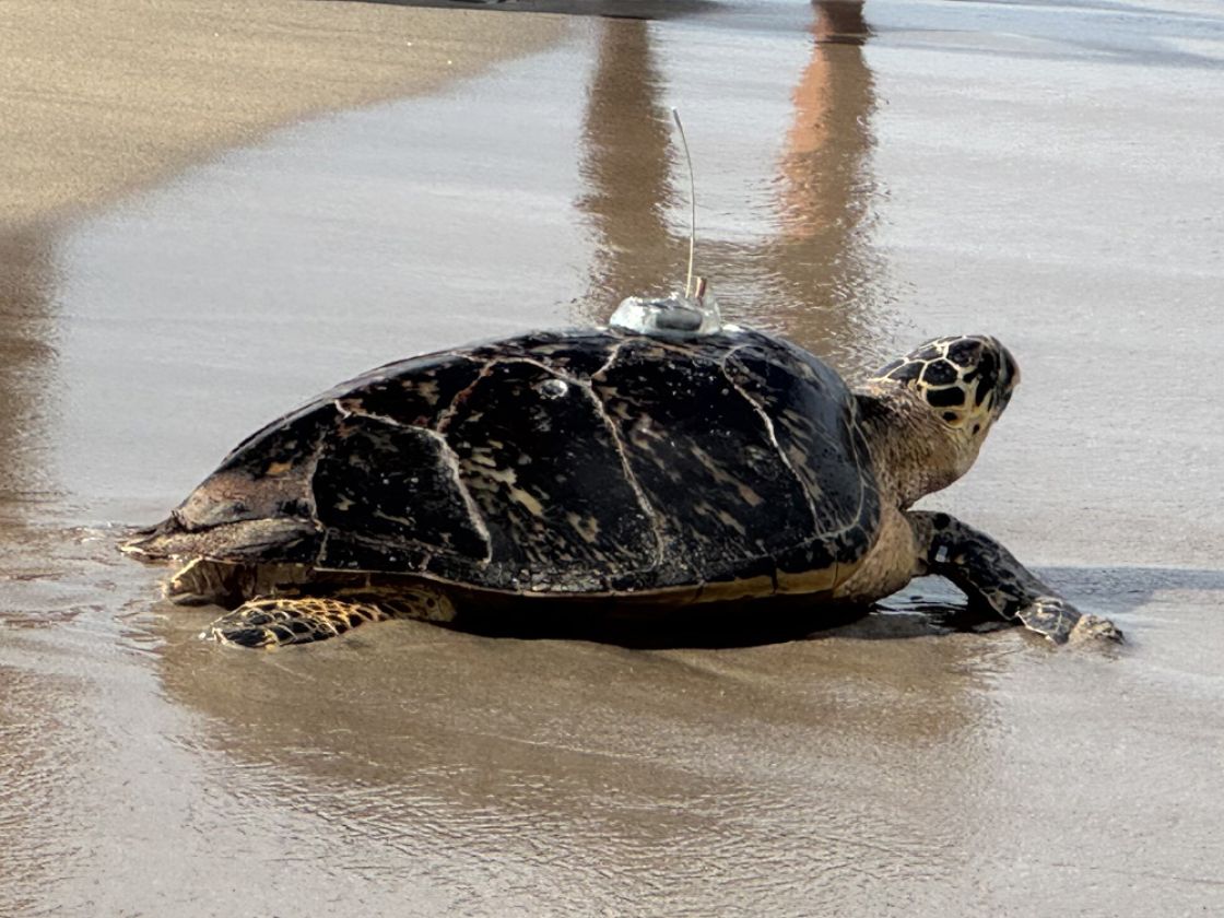 Billy is an adult female hawksbill sea turtle released on July 9, 2025 with a satellite transmitter. She was encountered nesting on Lovers Beach, Nevis and measured 80.0 cm curved carapace (shell) length and 69.0 cm curved carapce width. Billy was named by her Sponsor, Four Seasons Resort Nevis, and is taking part in the 2025 Tour de Turtles.