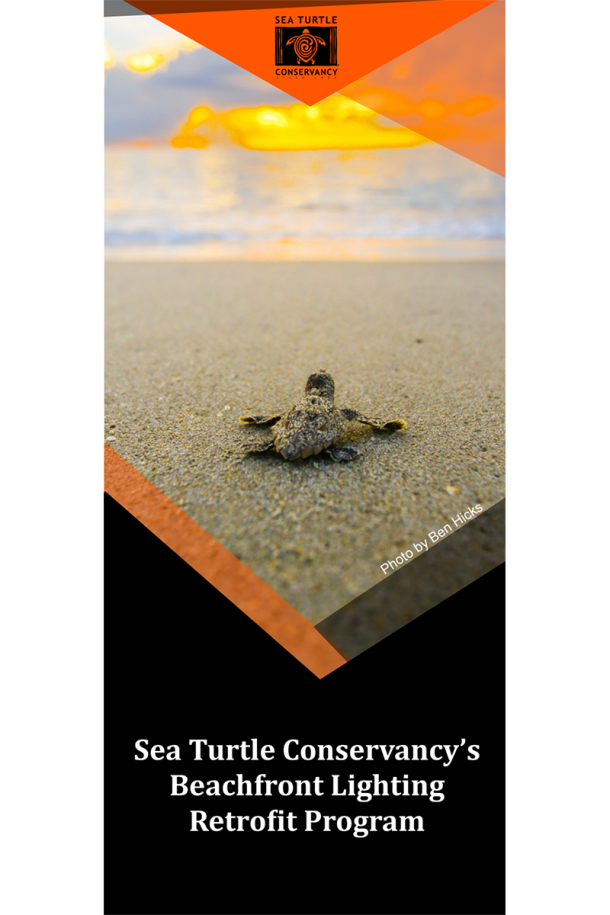 Sea turtles have crawled onto beaches to nest for millions of years. It was once easy for hatchlings to find the ocean after emerging from nests at night by using the darker dune, which created a silhouette to block light from the stars and moon, compared to the brighter ocean, which reflected the light. Now, Florida’s coasts are lined with beachfront properties that can emit powerful, white light, which can misorient sea turtles causing them to crawl toward those lights or disorient them causing them to crawl in circles on the beach. Conservationists document over 100,000 adult and hatchling sea turtles disorient each year in Florida. Sea Turtle Conservancy (STC) is working to mitigate problematic beachfront lighting and reduce sea turtle disorientations through lighting retrofits, training workshops, and other educational initiatives.