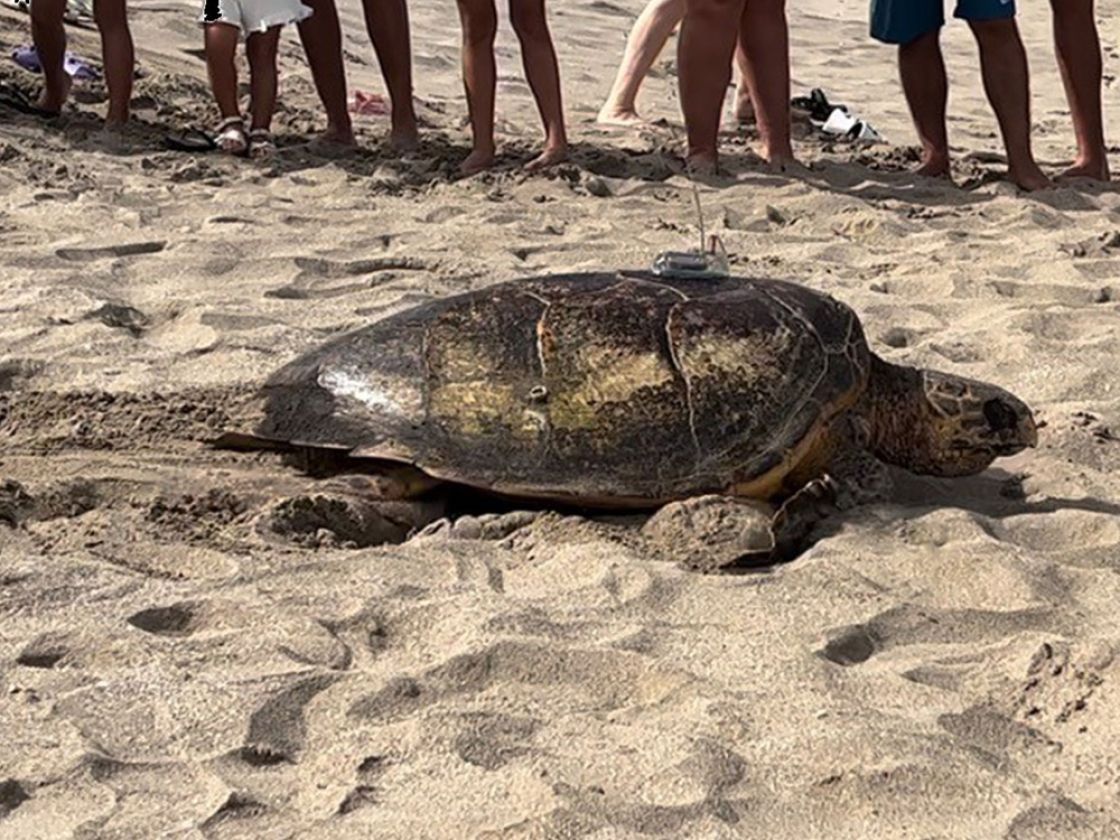 Tippi is an adult hawksbill sea turtle released on July 19, 2023 with a satellite transmitter. She was encountered nesting on Jones Bay beach, Nevis and measured 89.7 cm curved carapace (shell) length and 77.0 cm curved carapace Tippi was named by her Sponsor, Four Seasons Resort Nevis, and is taking part in the 2023 Tour de Turtles.
