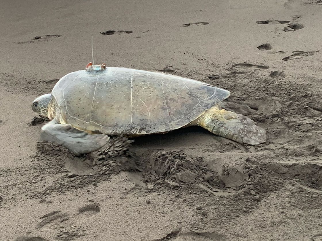 Aukai (Hawaiian for explorer/seafarer) is an adult female green sea turtle released with a satellite transmitter on July 12, 2021 from Tortuguero National Park in Costa Rica. She measured 101.3 cm in curved carapace (shell) length and laid 106 eggs. Aukai was named by her sponsor, HONU. She is taking part in the 2021 Tour de Turtles.
