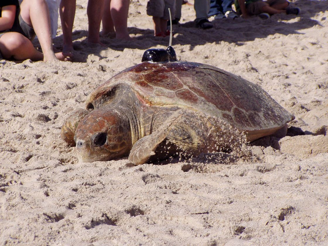 Belle o’ Brevard is an adult female loggerhead sea turtle encountered on July 30, 2008, in the Archie Carr National Wildlife Refuge, Florida. She measured 113.0 cm in curved carapace (shell) length, on the larger size for a loggerhead. Researchers estimate she weighed around 350 lbs!. She was encountered nesting again in the Carr Refuge in 2011 with her satellite tag still working. Belle o’ Brevard was one of the first loggerheads tracked by STC from the Carr Refuge, and provided one of the longest tracks for a loggerhead sea turtle, over 4 years!