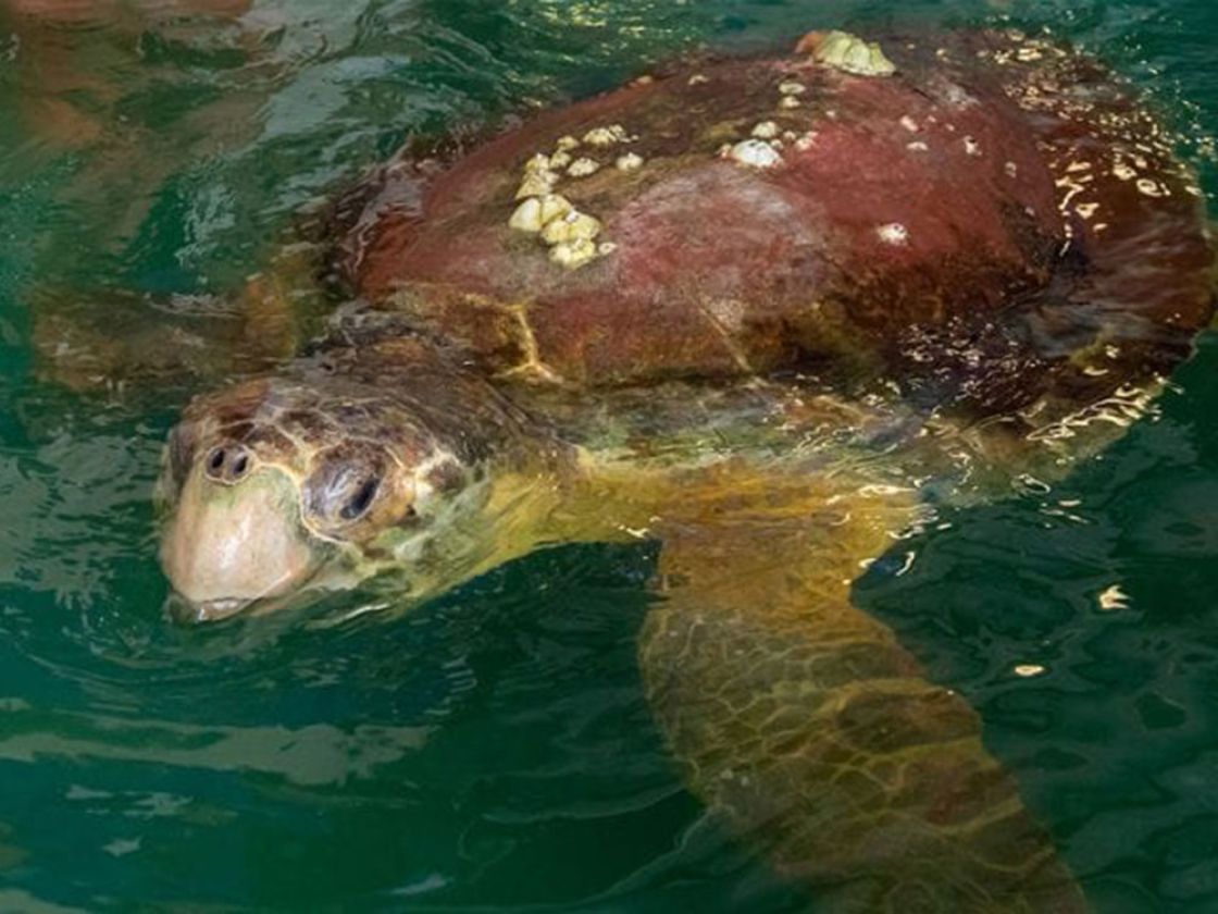 Bowser is an adult male loggerhead weighing 85.2 kg and 83.5 cm curved carapace length. Bowser was found floating and swimming sideways around St. John’s Sound, between Honeymoon Island State Park and Fred Howard Park on June 13, 2018. This was most likely due to gastrointestinal gas. He was treated at the Clearwater Marine Aquarium and was released on October 18, 2018 with a satellite transmitter.