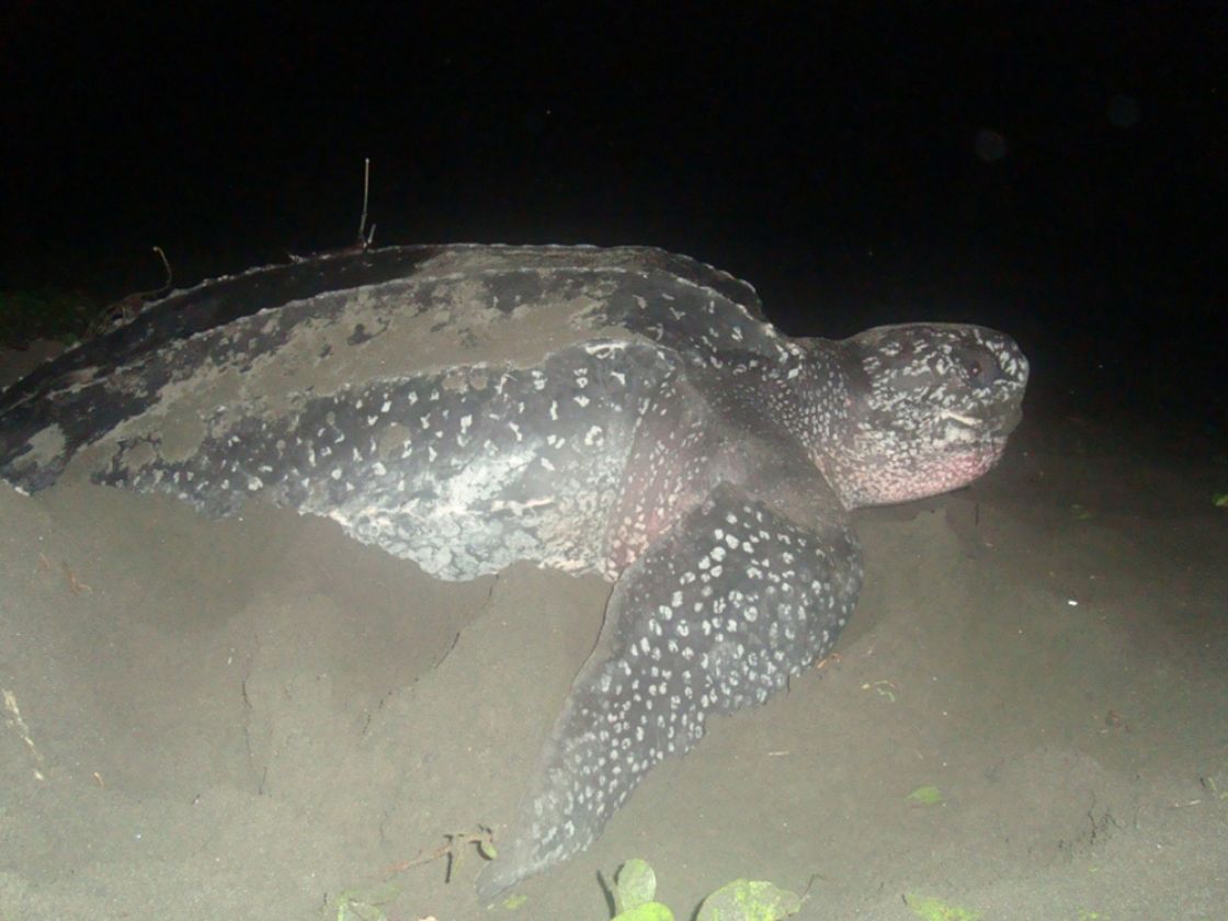 Calypso Blue II is an adult female leatherback sea turtle released with a satellite transmitter from Sorpota Beach, Panama on May 26, 2013. She measured 156.2 cm in curved carapace (shell) length and 114.3 cm curved carapace width. She took part in the 2013 Tour de Turtles and was named by her sponsor, Atlantis Resort, Paradise Island, Bahamas.