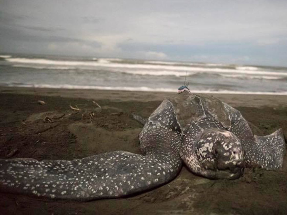 Certina is an adult female leatherback sea turtle released with a satellite transmitter from Soropta Beach, Panama on May 28, 2018. She measured 156.7 cm in curved carapace (shell) length and 106.2 cm in curved carapace width. She was named by her sponsor, Certina, and took part in the 2018 Tour de Turtles.