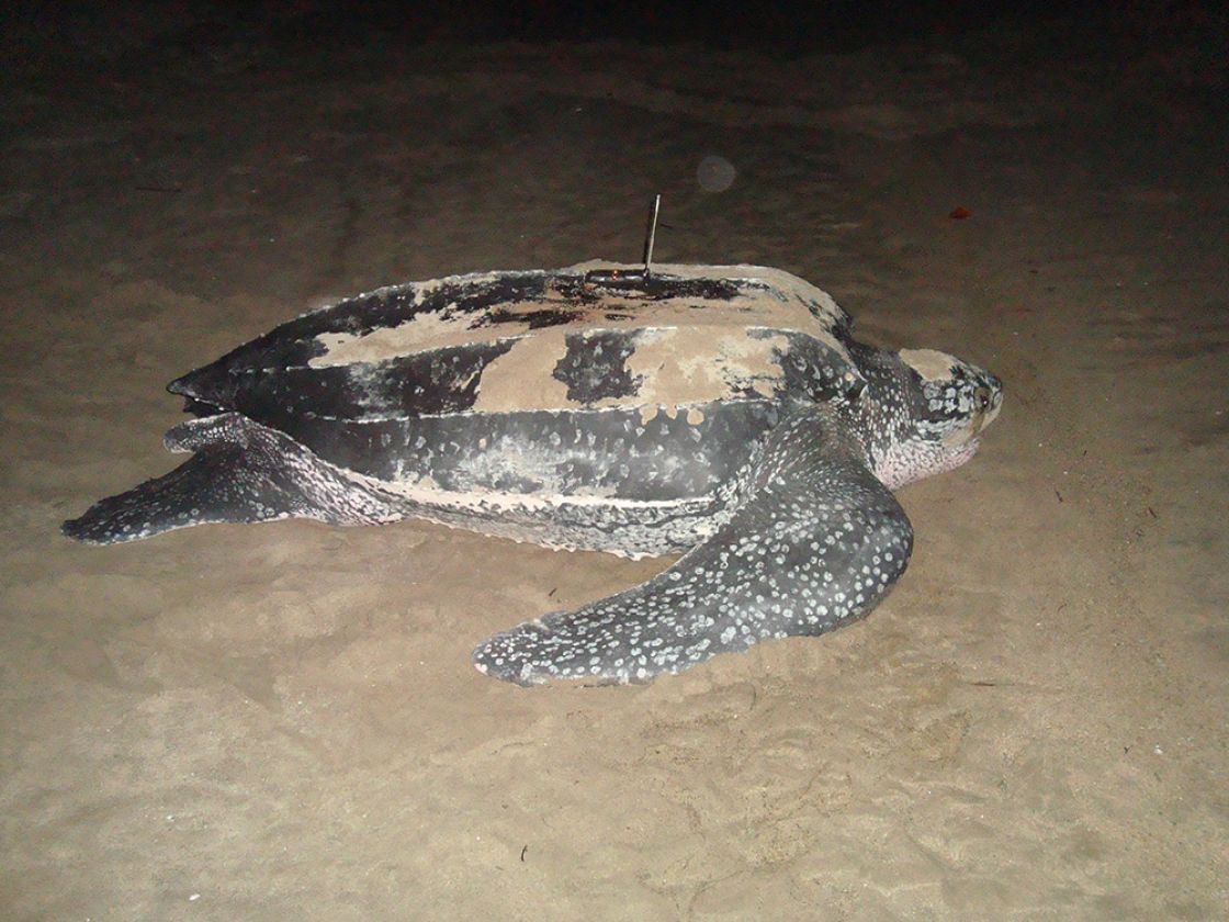 Crystal is an adult female leatherback sea turtle encountered nesting on May 27, 2011, on Chiriquí Beach in Panama. She measured 159 cm in curved carapace (shell) length and 113 cm curved carapace width. She was first observed by STC researchers nesting in the 2009 season.