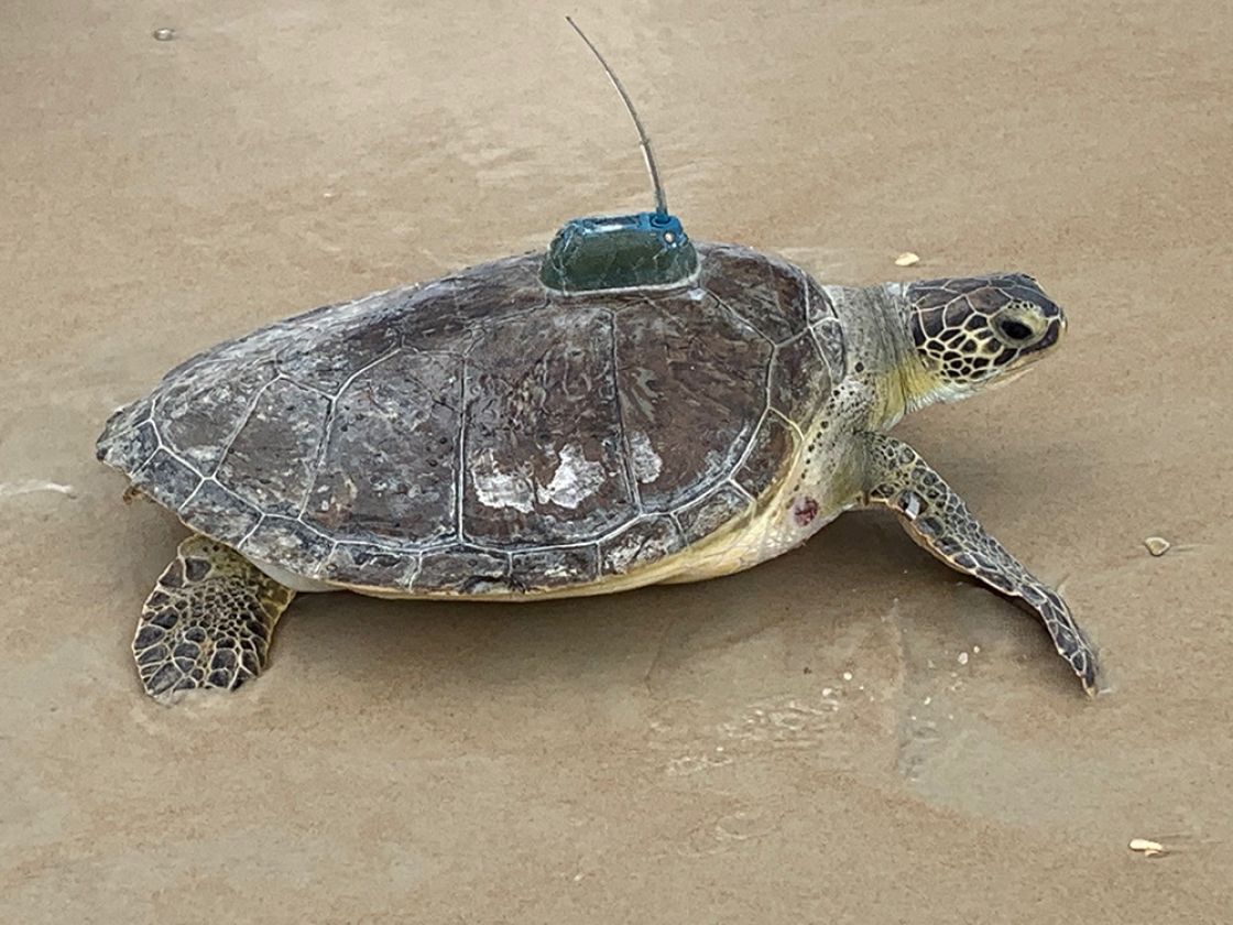 Epo is a juvenile green sea turtle that was found stranded on Flagler Beach, Florida in March, 2021 as part of a cold stun event on Florida’s east coast. Epo was taken to Volusia Marine Science Center for triage and was then later transferred to The Florida Aquarium for rehabilitation. After months of care, Epo was cleared for release and released with a satellite tag on August 25, 2021. Epo’s satellite transmitter was sponsored by Tampa Electric (TECO).