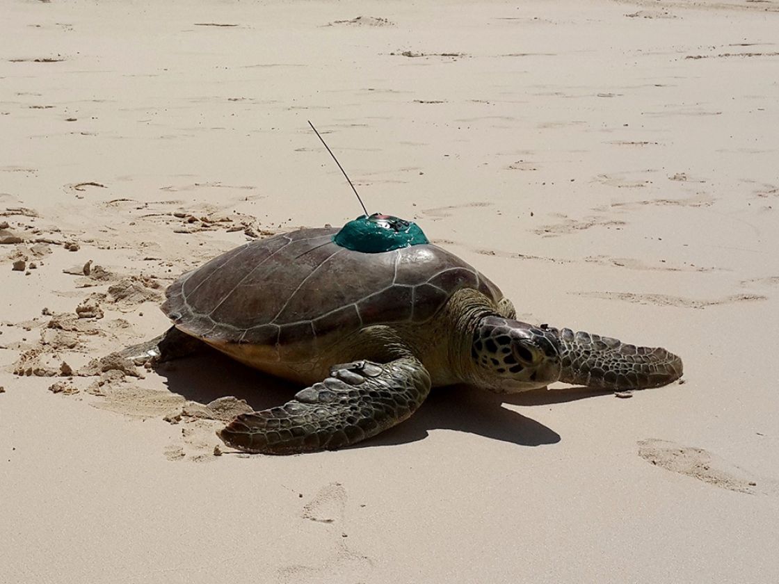 Hardy is a juvenile green sea turtle caught in Somerset Long Bay, Bermuda. He measured 67.1 cm straight carapace (shell) length and was released with a satellite transmitter on August 10, 2016. Data © Bermuda Turtle Project.