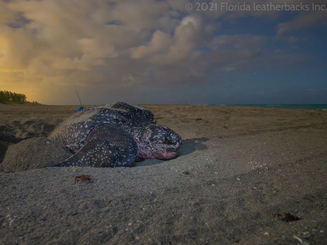 Indigo is an adult female leatherback sea turtle that was observed nesting on May 12, 2021 on Jupiter Island, Florida, USA. She measured 157.5 cm in curved carapace (shell) length. Indigo is taking part in the 2021 Tour de Turtles and was named by her Sponsor, Sea Turtle Conservancy.