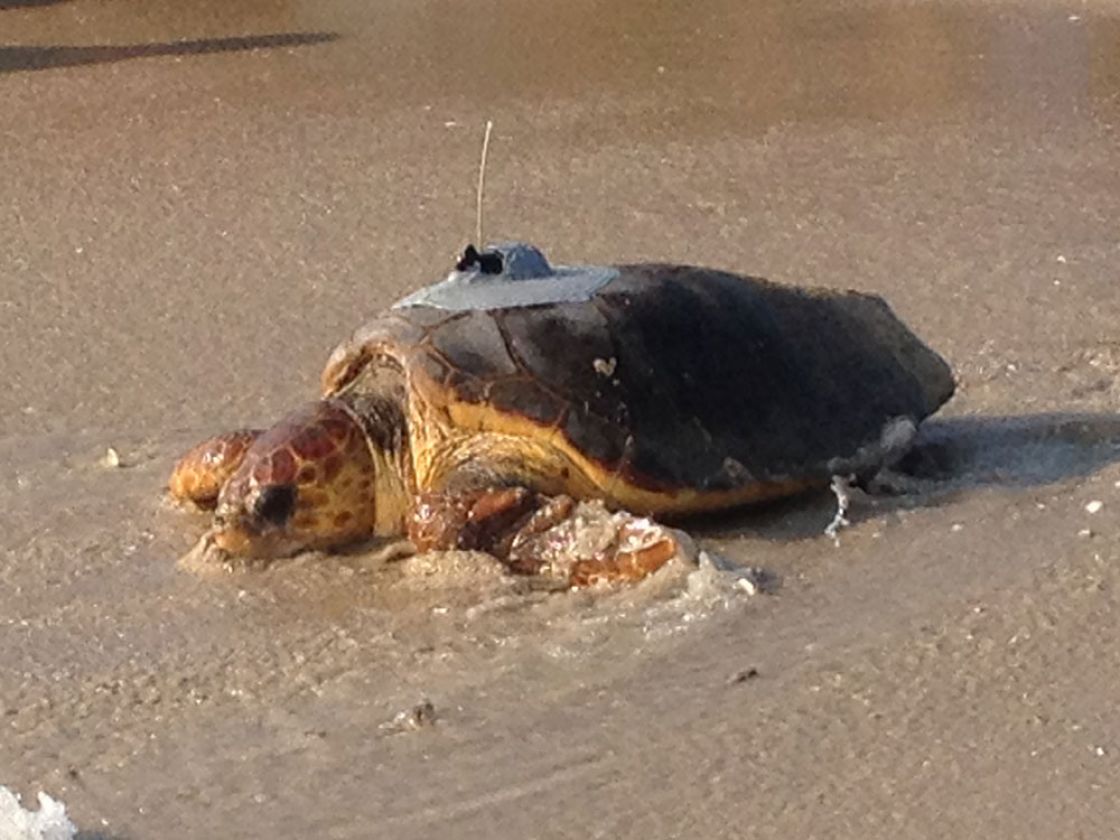 Johnny is an adult female loggerhead sea turtles released with a satellite transmitter on July 28, 2013 from the Archie Carr National Wildlife Refuge, Florida. She measured 97 cm in curved carapace (shell) length. She took part in the 2013 Tour de Turtles and was named by her sponsor, Johns Island Real Estate Company.