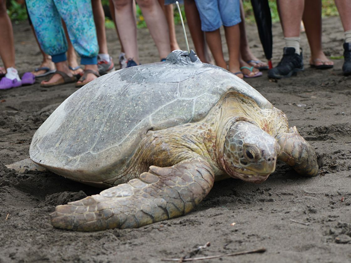 Mei Mei is an adult female green sea turtle released with a satellite transmitter on August 4, 2019 from Tortuguero National Park in Costa Rica. She measured 104.0 cm in curved carapace (shell) length and was named by her sponsor, JD.com. She took part in the 2019 Tour de Turtles.