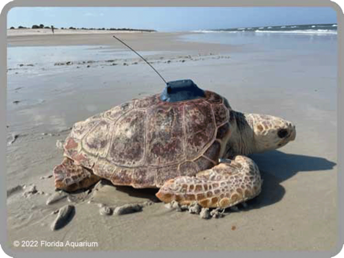 Monty is a juvenile loggerhead sea turtle that was found stranded in Cape Cod Bay, Massachusetts as a part of a cold stunning event. Monty was initially triaged at the New England Aquarium and was then flown in a private airplane to The Florida Aquarium for rehabilitation via Turtles Fly Too. After months of care, Monty was 44.7 cm in length and over 18 kg in weight. Monty was cleared for release, and was released with  a satellite tag on May 19, 2022. Monty’s satellite transmitter was funded by the Association of Zoos and Aquariums Conservation Grants Fund.