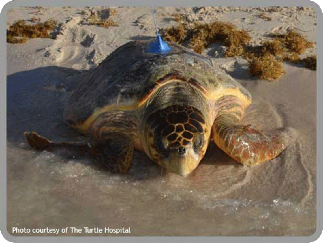 Papa is an adult male loggerhead sea turtle rescued offshore of Marathon, Florida on Coffin’s Patch Reef on July 18 with great help from the US Coast Guard Marathon Station! Papa was inadvertently hooked by a fisherman and was rehabilitated at The Turtle Hospital. He weighs 175 lb, measured 85.0 cm curved carapace (shell) length, and 81.4 cm curved carapace width. Papa was released with a satellite transmitter on July 21 and is taking part in the 2022 Tour de Turtles. His transmitter is sponsored by The Turtle Hospital.