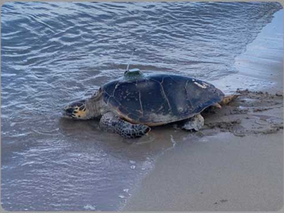 Rose is an adult hawksbill sea turtle released on September 11, 2021 with a satellite transmitter. She was encountered nesting on Cade’s Bay Beach, Nevis. She measured 83.3 cm curved carapace (shell) length and 72.9 cm curved carapace width. Rose took part in the 2021 Tour de Turtles.