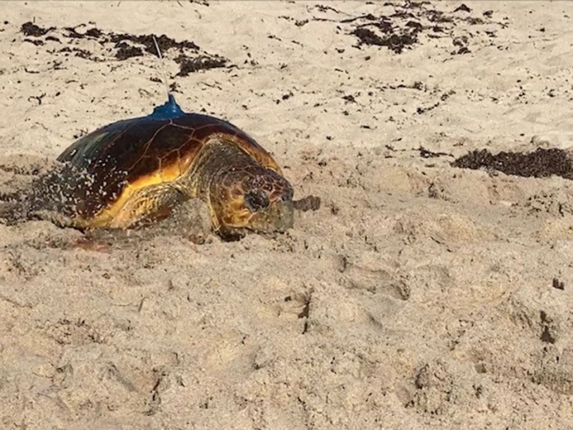 Sandy is an adult female loggerhead sea turtle released with a satellite transmitter on July 21, 2020 from south of the Archie Carr National Wildlife Refuge, Florida. She measured 91.1 cm curved carapace (shell) length and 82.3 cm curved carapace width. Sandy took part in the 2020 Tour de Turtles and was named by her sponsor, Ocean’s Lending.