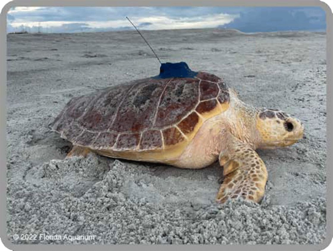 Sid is a juvenile loggerhead sea turtle that was found stranded in Cape Cod Bay, Massachusetts as a part of a cold stunning event. Sid was initially triaged at the New England Aquarium and was then flown in a private airplane to The Florida Aquarium for rehabilitation via Turtles Fly Too. After months of care, Sid was 61.8 cm in length and over 29 kg in weight. Sid was cleared for release, and was released with  a satellite tag on July 20, 2022. Sid’s satellite transmitter was funded by the Association of Zoos and Aquariums Conservation Grants Fund.