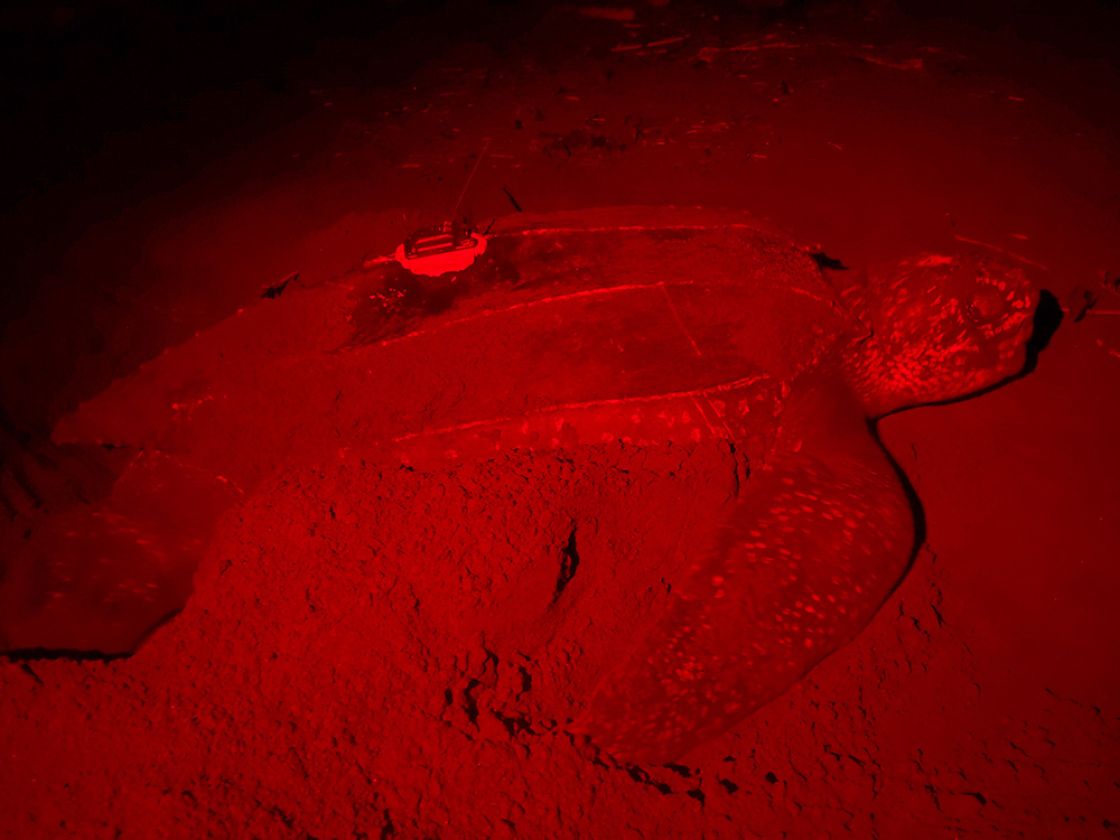 Soca is an adult female leatherback sea turtle released with a satellite transmitter from Soropta Beach, Panama on May 27, 2017. She measured 142.4 cm in curved carapace (shell) length and 107.5 cm in curved carapace width. She had a small indent in the end of her carapace and was previously flipper tagged in May, 2015. Soca was named by her sponsor, Atlantis Paradise Island Resort, and took part in the 2017 Tour de Turtles.