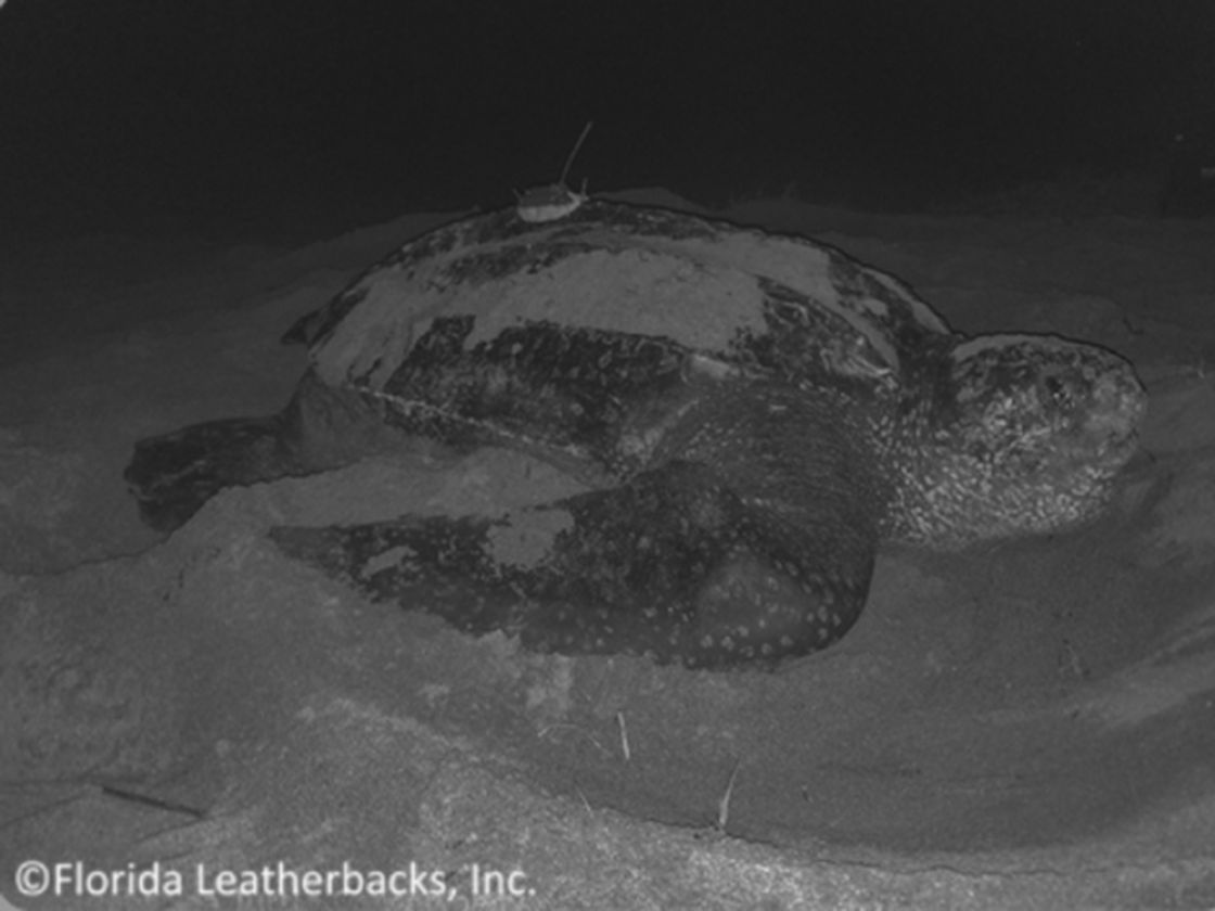 Tamarind is an adult female leatherback sea turtle that was observed nesting on May 21, 2020 on Jupiter Island, Florida, USA.  She is a small Florida leatherback measuring 147.5 cm in curved carapace (shell) length and 97.5 cm curved carapace width. Tamarind took part in the 2020 Tour de Turtles and was named by her Sponsor, Atlantis, Paradise Island.