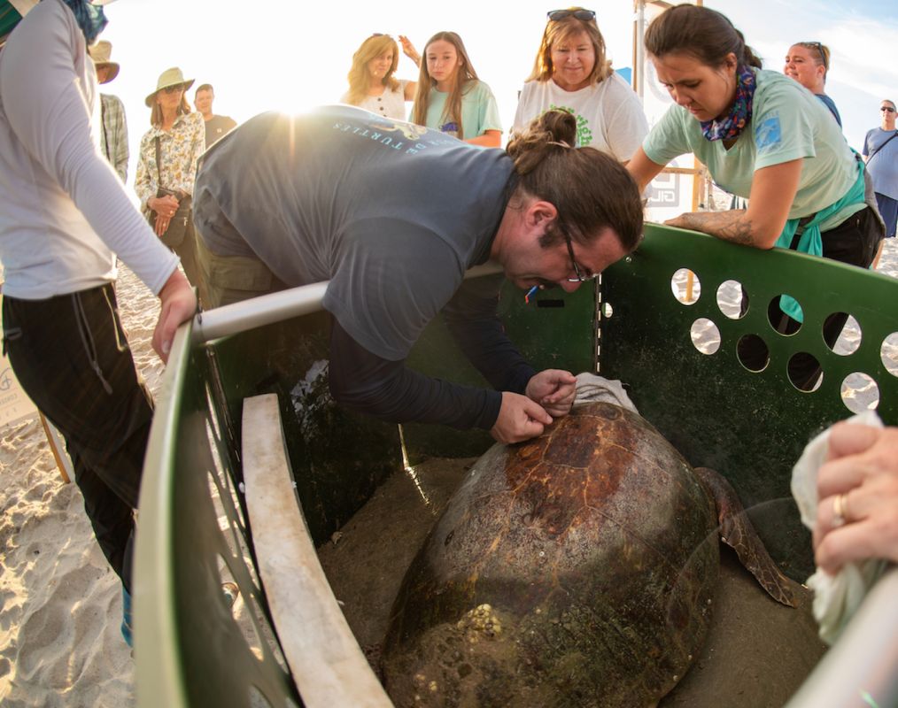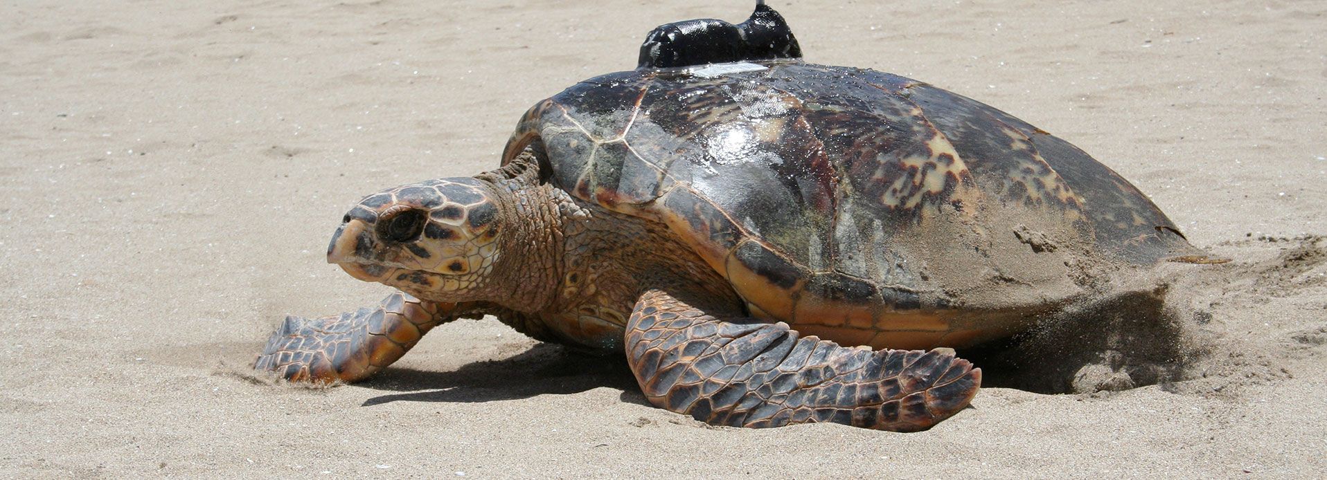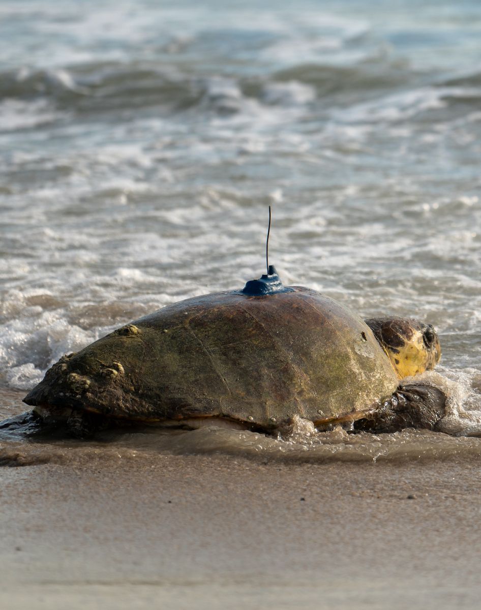 While researchers continue to modify and develop new techniques to reduce any impacts to sea turtles, having a transmitter attached does create some additional drag while the turtle is swimming. Proper attachment methods are designed not to harm the sea turtle, damage its shell or increase the turtle’s chances of being tangled. Researchers have recorded females returning to successfully nest after having a transmitter attached. This suggests that having a transmitter does not impact a sea turtle’s migration, feeding and mating behavior.