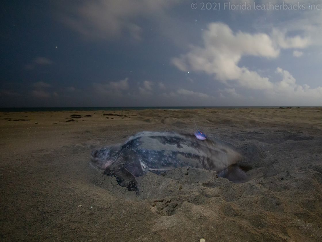 TURQ is an adult female leatherback sea turtle that was observed nesting on June 5, 2021 on Jupiter Island, Florida, USA. She measured 143.0 cm in curved carapace (shell) length. TURQ is taking part in the 2021 Tour de Turtles and was named by her Sponsor, ODOS Eyewear.