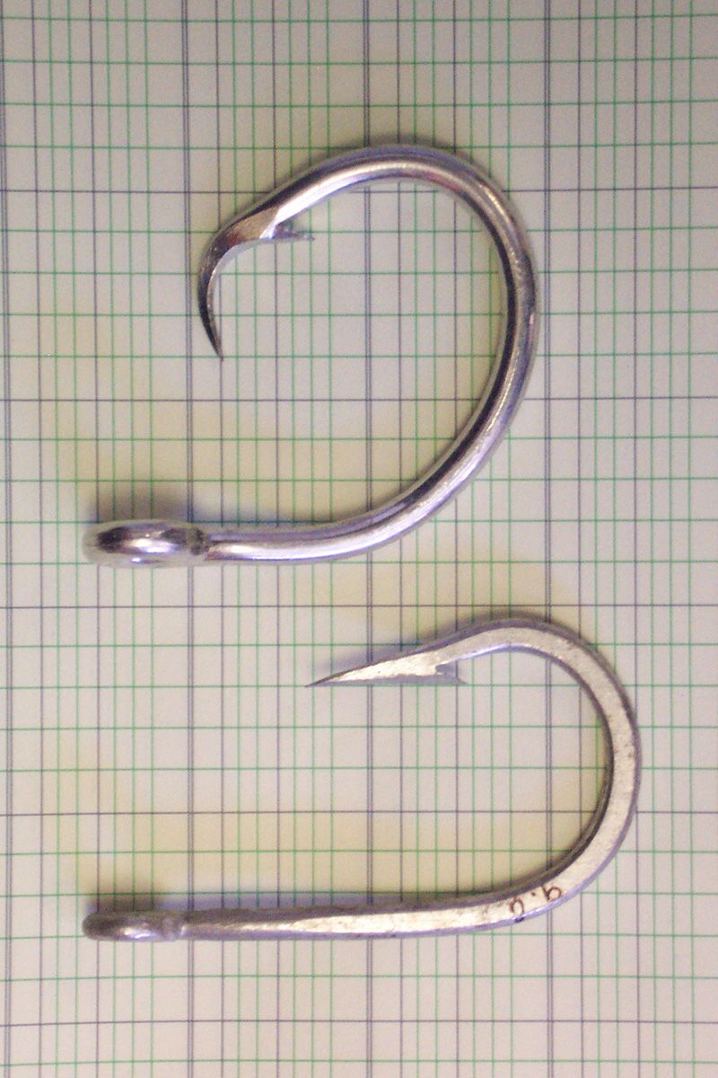 In a study conducted by the NOAA Fisheries Pascagoula Laboratory and the NOAA Fisheries Miami Laboratory, in cooperation with Blue Water Fishermen’s Association, encounters with leatherback and loggerhead turtles were reduced by 65 and 90 percent, by switching from the traditional “J” hook (bottom image) to the larger circle hook (top image).