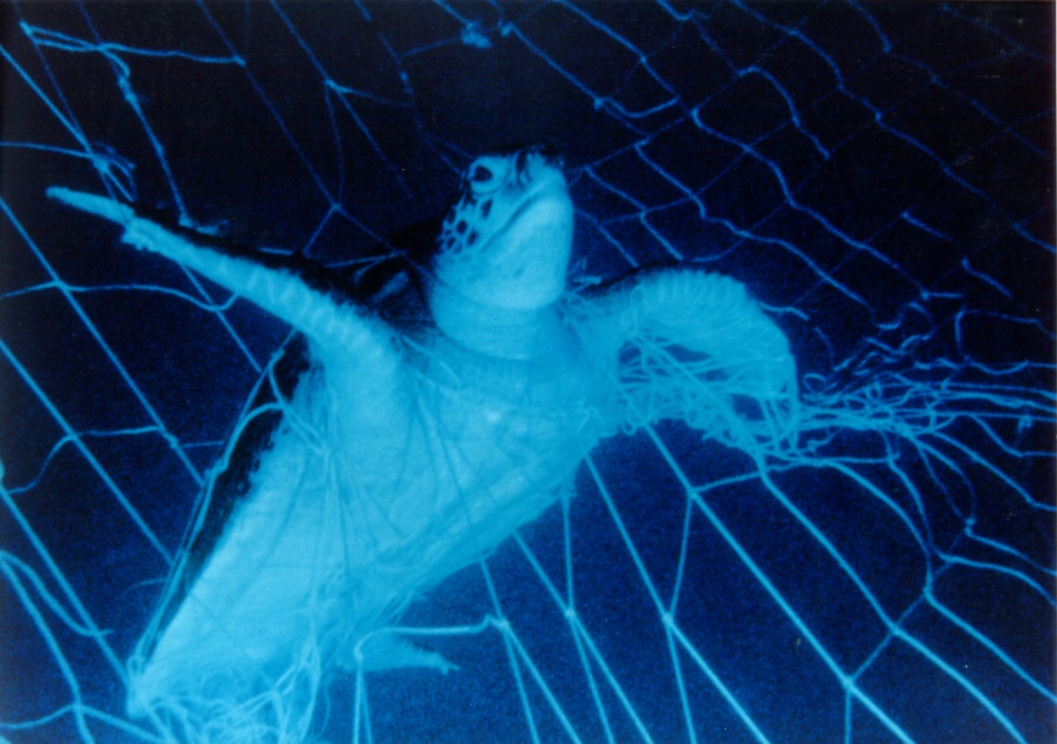 A green turtle drowns after being trapped in a gill net. Photo credit: NOAA