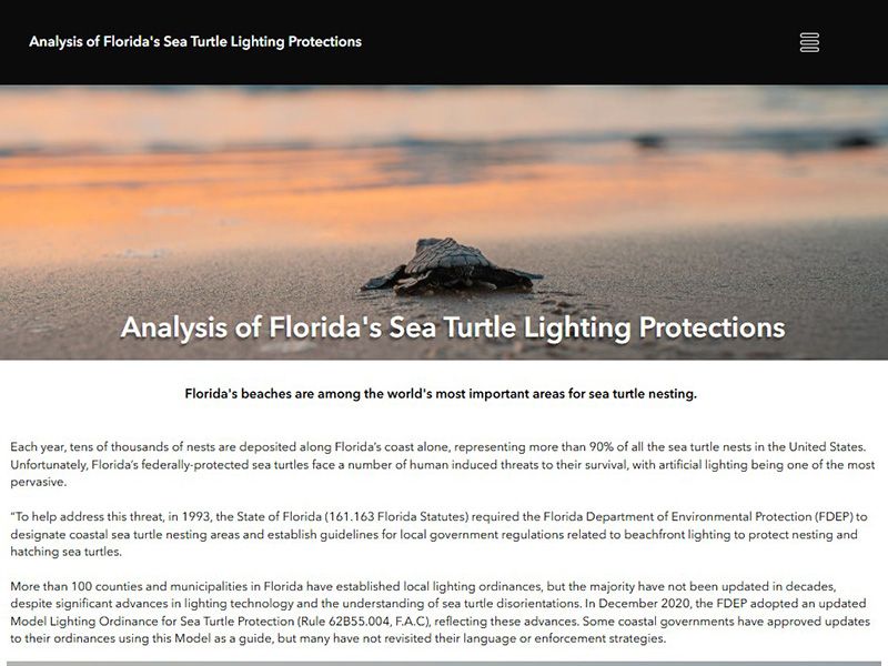 STC, National Wildlife Federation, and FWC launched an interactive online tool to help local governments understand how their sea turtle protections efforts (ordinance language and implementation) compare with ideal standards set in the State’s updated Model Lighting Ordinance for Sea Turtle Protection.