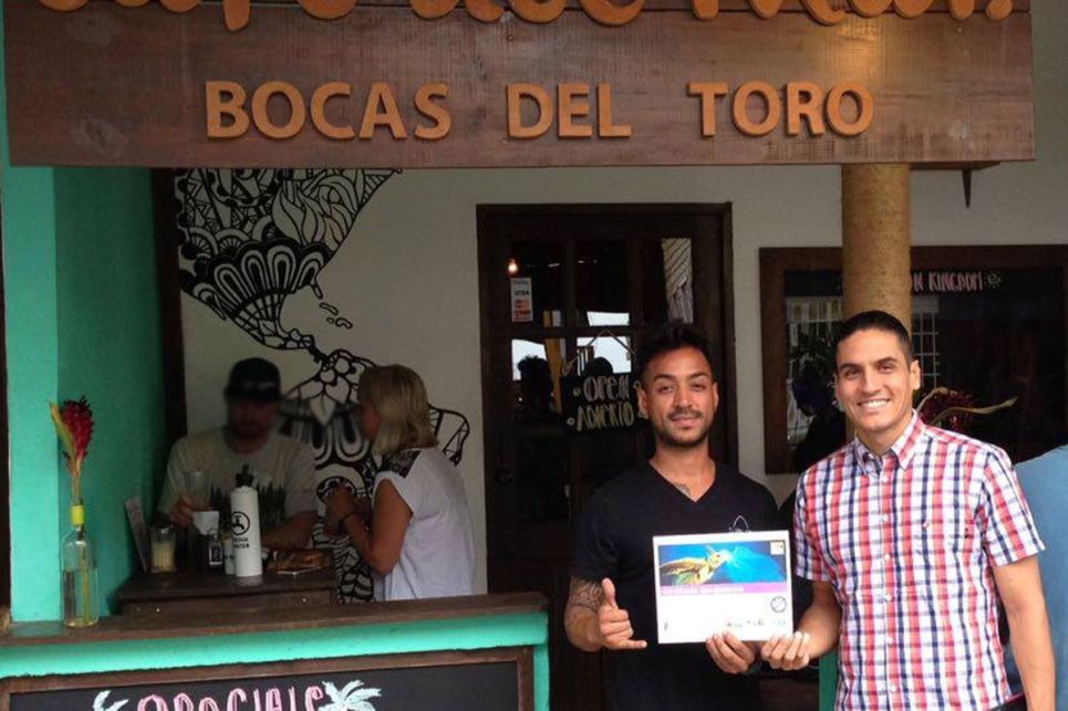 Sea turtle tourism program at Bluff Beach, Isla Colon, with the aim that people learn about sea turtles and their threats, as well as they presence the adult female nesting process at the beach.