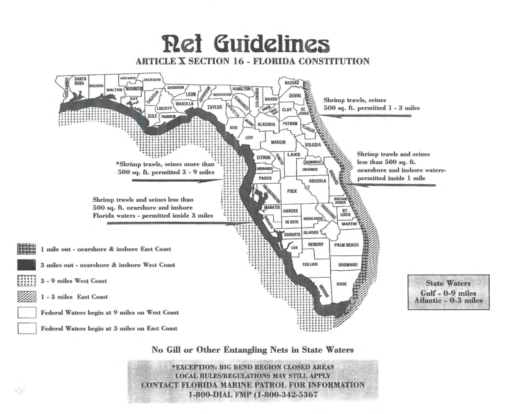While implementation of the 1987 regulations was stalled in Washington, D.C., a handful of states were taking matters into their own hands, including Florida. In January 1989, the Florida Marine Fisheries Commission (“Commission”) passed an emergency rule restricting trawling times and requiring shrimpers to implement TED usage in State waters by February 1989.[26] (In Florida, State waters extend three miles into the Atlantic and nine miles into the Gulf of Mexico, while federal waters extend 12 miles from the Coast). Back in the federal capital, the Commerce Secretary reacted to reports of heightened numbers of stranded turtles over the winter months in Florida and southern Georgia. Deciding that these southern turtle populations could not wait until May 1989 for the 1987 Sea Turtle Regulations to go into effect, the Commerce Secretary implemented an emergency rule requiring fishermen in waters off northern Florida and southern Georgia to use TEDs.[27] After a 60-day grace period following the end of the congressional pause, the 1987 final Sea Turtle Regulations went into effect on June 30, 1989.[28]