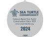 The 2024 ornament features 3 sea turtles eating seagrass. The slogan “Science-Based Sea Turtle Conservation Since 1959” and the year 2024 are engraved on the back.